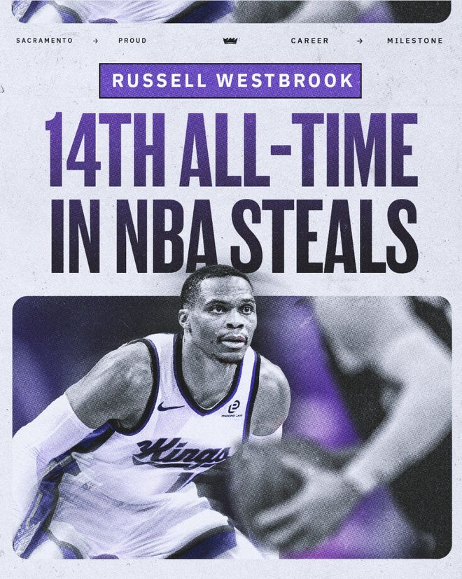 威少正式超越艾弗森!升至NBA历史抢断榜第14位